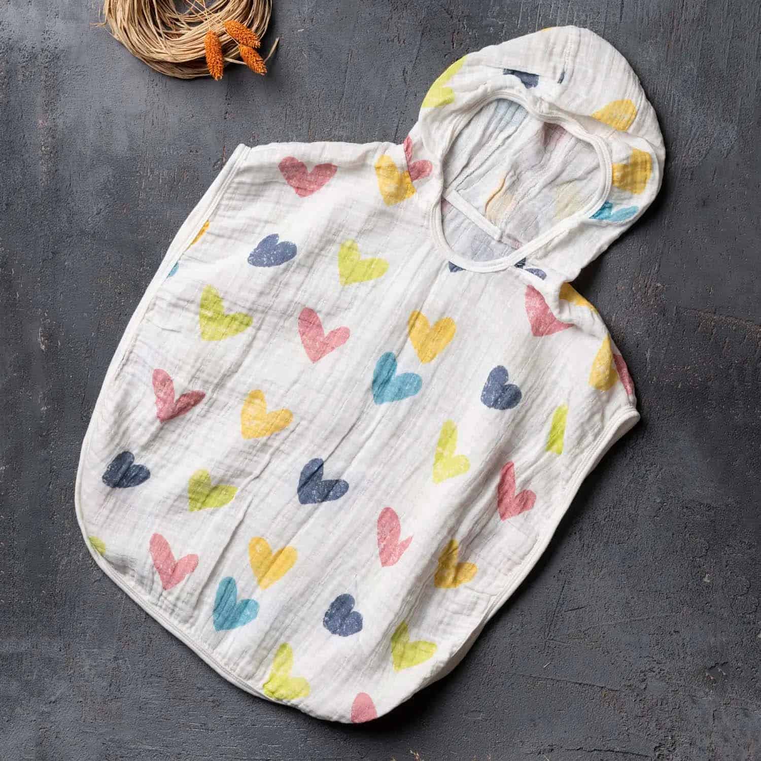 Poncho de Musselina 100% Algodón Orgánico Contenido del Producto: Ambas capas de la tela están hechas de hilo de algodón de alta calidad. 100% algodón orgánico. Certificado OEKO-TEX ESTÁNDAR (“Textil fiable”) y GOTS (Estándar Global Textil Orgánico). Se utiliza hilo de algodón en todo el poncho, incluido el cuello y el cuello. Ha sido prelavado, se volverá más suave a medida que se lava. Fue creado para usos múltiples. Ideal para baño, mar y más allá. Es adecuado en todas las estaciones. Previene a los bebés y su educación con su delicada, transpirable establecimiento. Tiene una alta capacidad de absorción.