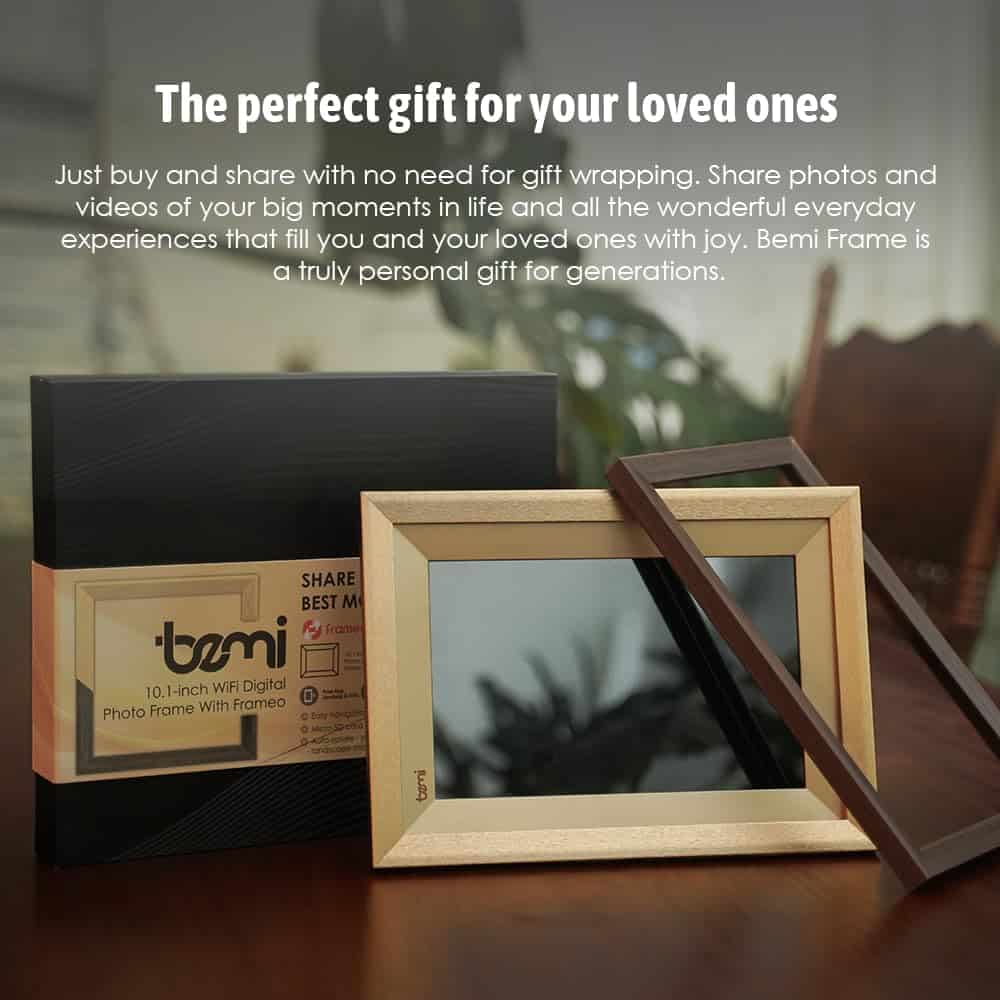 El Marco BEMI con Aplicación Frameo es el regalo perfecto para cualquier ocasión. Sorprende a tus seres queridos con este marco de fotos digital inteligente con una pantalla táctil IPS LCD de 10.1 pulgadas y una memoria incorporada de 16GB. Con la aplicación Frameo integrada, puedes compartir tus momentos favoritos al instante con amigos y familiares.